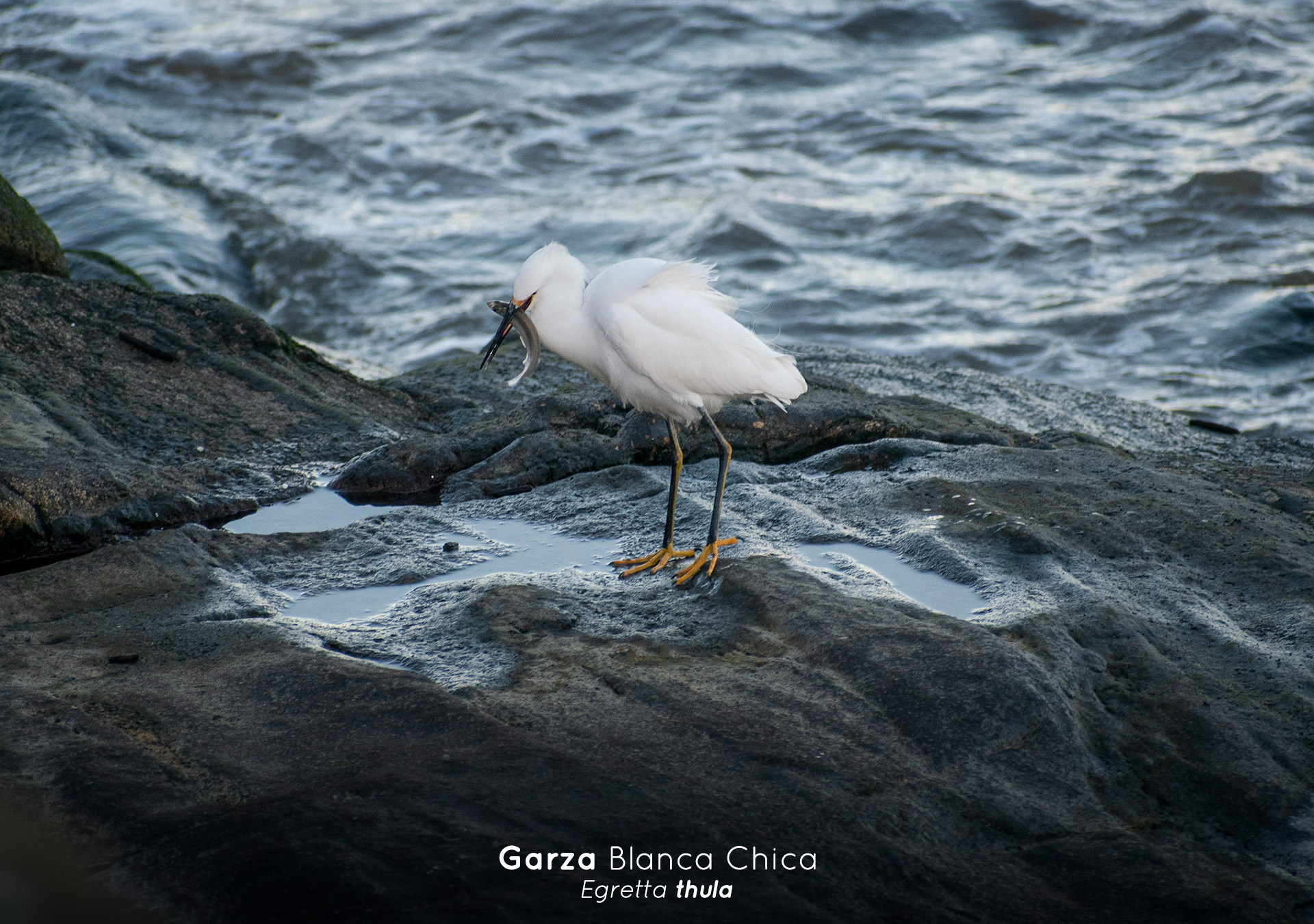 La Egretta thula habita lagunas y tajamares y suele verse en las rocas de la costa marítima. Es más chica que la Garza Blanca Grande (Ardea alba). Es residente y su estado de conservación está listado a nivel global como de preocupación menor (LC).